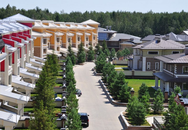 Жилой комплекс «Азарово» расположен в д. Семенково Московской области (около 23 км до МКАД по Можайскому шоссе). Соискателям элитного жилья предлагаются 113 вариантов – апартаменты, таунхаусы, коттеджи с площадью от 460 до 1 900 м2. Этажность – от 2 до 5. Здания кирпичные, с высокими потолками (4 м). Придомовые территории и улицы благоустроены. Загородный жилой комплекс расположен в красивом месте: вокруг раскинулись леса, много скверов, зон отдыха, мест для прогулок с детьми. В районе на высоком уровне развита инфраструктура: есть все необходимое – в частности, детские садики, школы, спортивный комплекс.