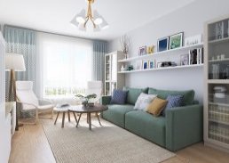 В квартирах будет выполнена разводка инженерных и слаботочных сетей, установлены отопительные радиаторы. Предусмотрены пластиковые окна, натяжной потолок, все двери, напольный ламинат, плитка в санузлах. На стенах в комнатах будут поклеены обои под покраску. При работах используются только высококачественные материалы.